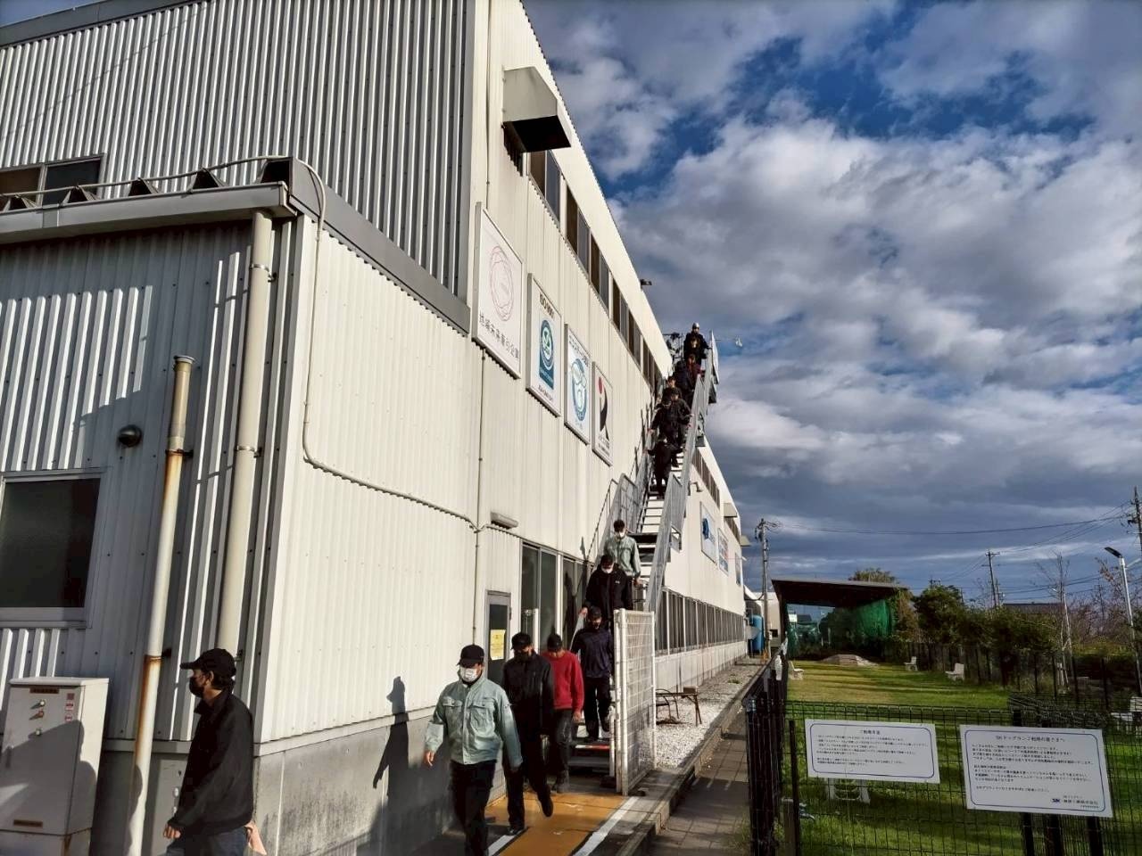 その後は点呼訓練も実施し、津波一時避難場所である工場の屋上へ避難する訓練をしました。